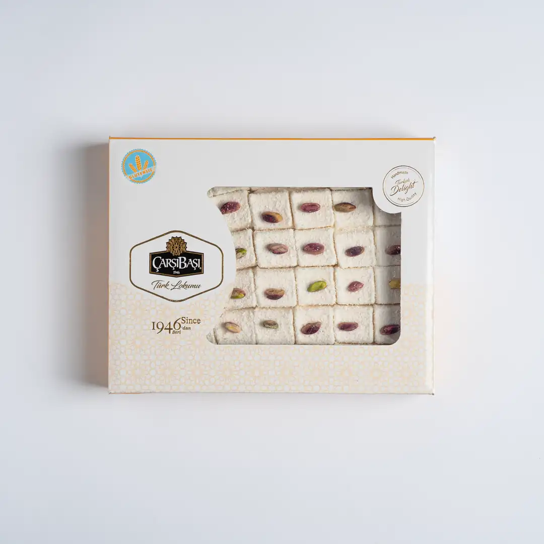 Gerçek Antep fıstığının yoğun aromasıyla hazırlanmış, geleneksel usulde üretilen premium Basma Lokum.