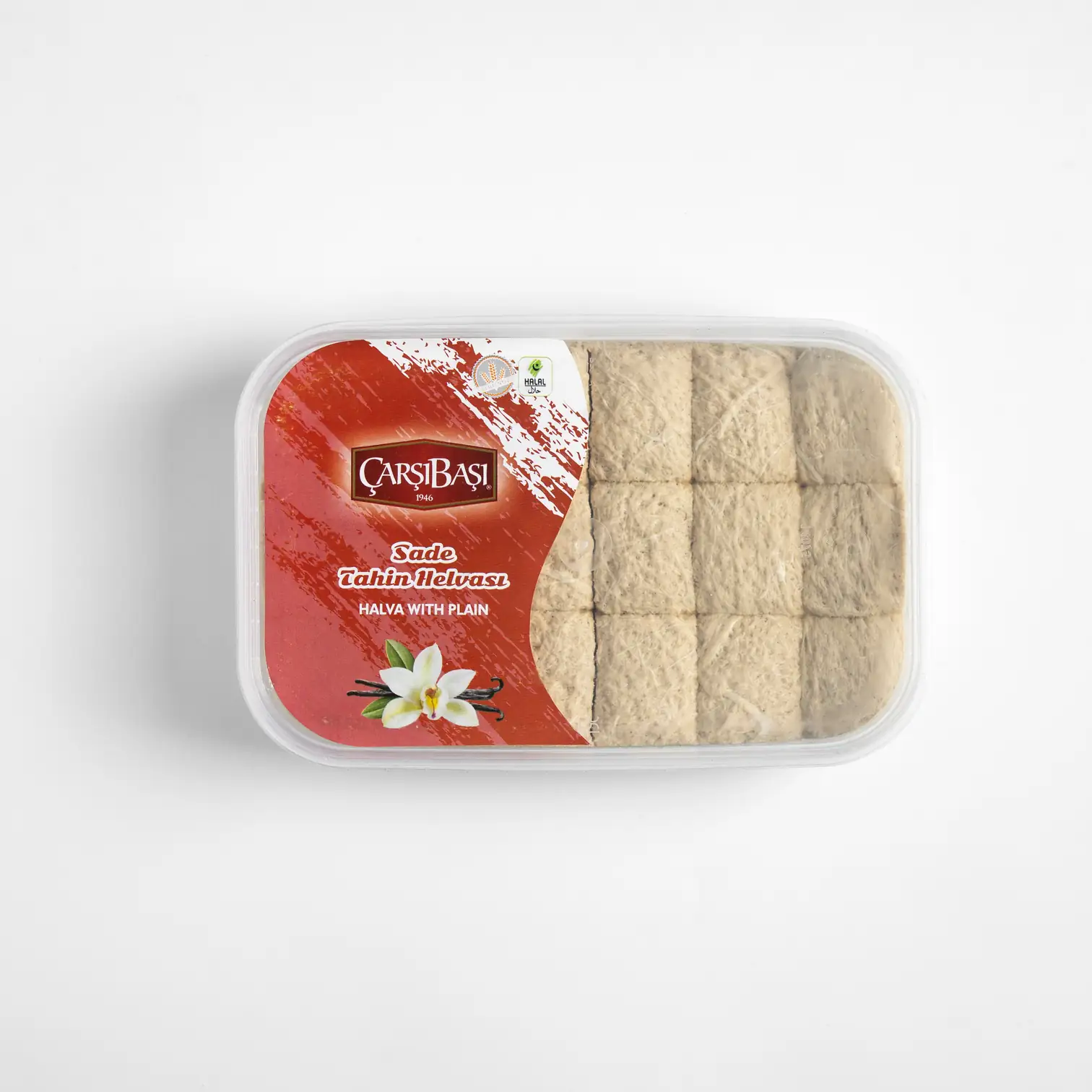 İçindekiler : Tahin (Susam), Toz Şeker, Çöğen Suyu, Emülgatör (Bitkisel yağlarınmono-di-trigliseridleri), Asitlik Düzenleyici (Sitrik Asit E-330), Doğala Özdeş Aroma (Vanilin).Glikoz ve Früktoz şurubu içermez%100 pancar şekerinden üretilmiştir.