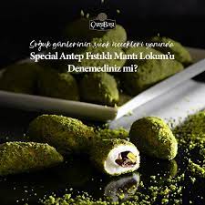Antep Fıstıklı Mantı Lokum, mantıyı andıran özel formu, yumuşak lokum dokusu ve içindeki bol Antep fıstığı ile hem görsel hem de lezzet açısından fark yaratır. Her lokmada yoğun fıstık aroması ve dengeli tatlılık sunar.